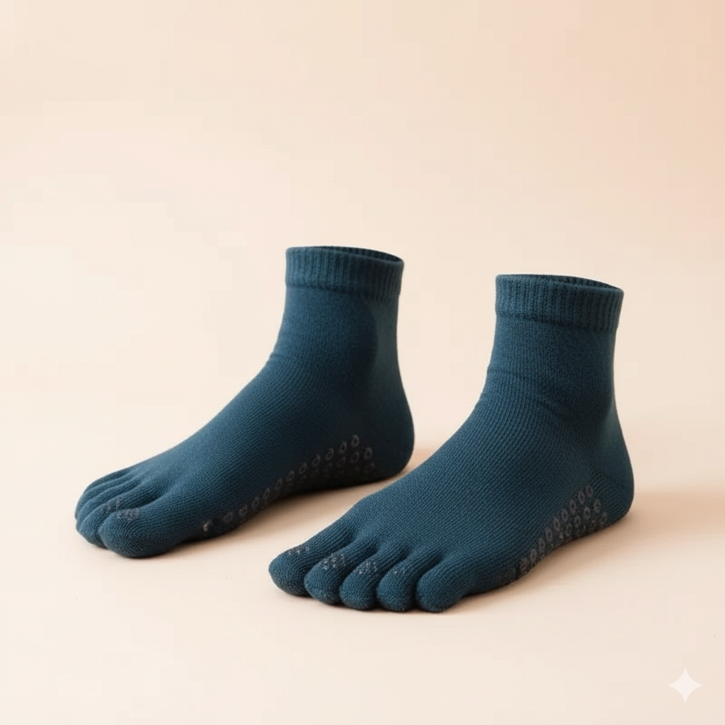 خليك ثابت ومحفّز في جلسات البيلاتس أو اليوغا مع جوارب خمس أصابع غير قابلة للانزلاق — بتصميم يخليك تتحكّم بحركاتك وتتجنب الانزلاق أو الأقدام الزلقة.